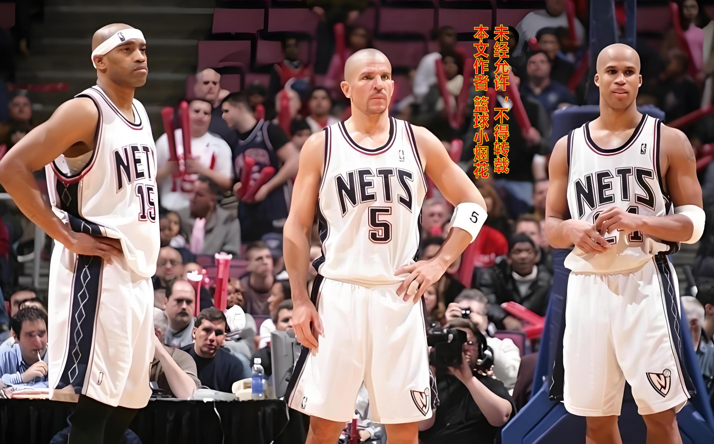 彼时的篮网工资构成极不合理,三大球星文斯卡特、理查德-杰弗森和贾森基德就占据了球队70%的工资,剩下的十几人工资和能力也都差不多,因此轮换阵容很长,上赛季有八人场均得分在5分以上,还有三名10-15分之间的。
