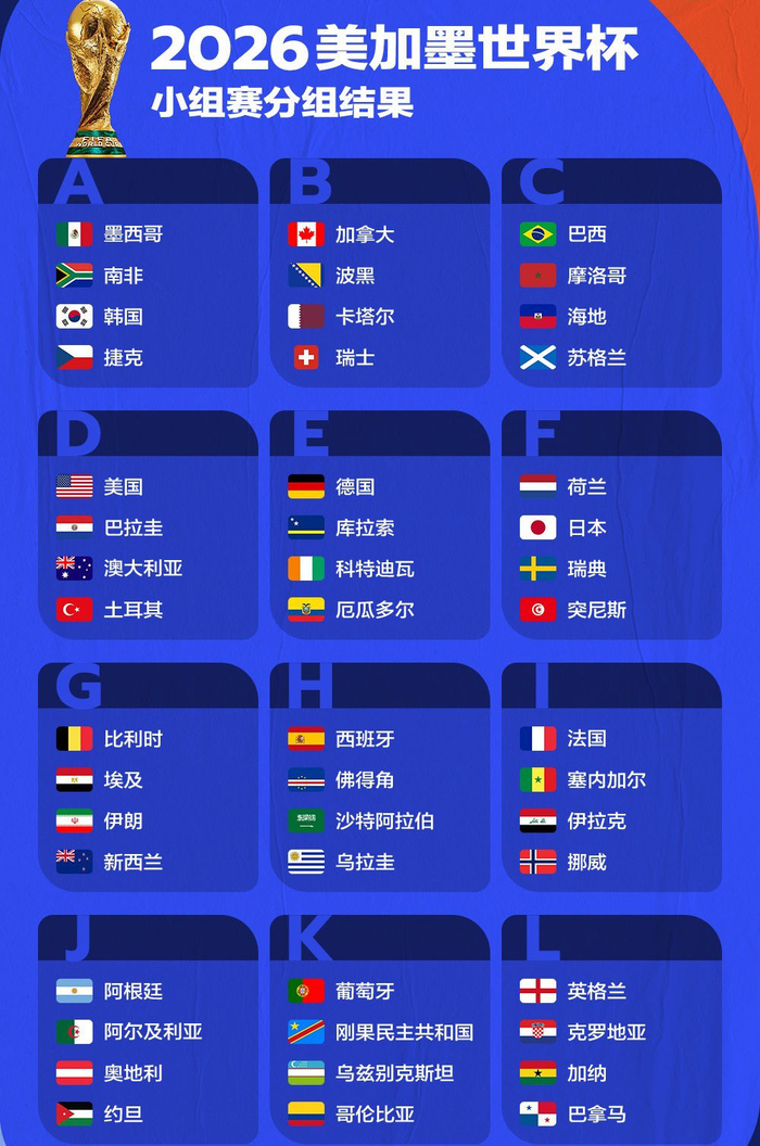 2026世界杯最终分组如下——
